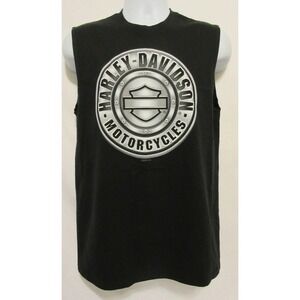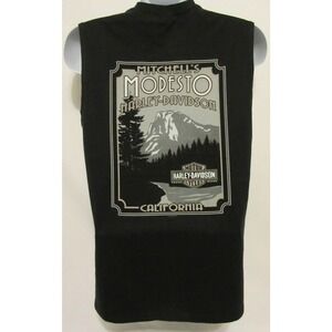 Mitchell's Modesto CA Harley Davidson Black Full Chrome Muscle Tank Shirt Mens M
