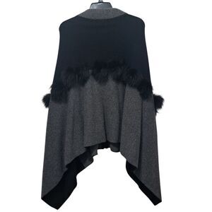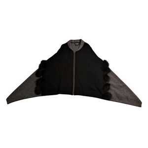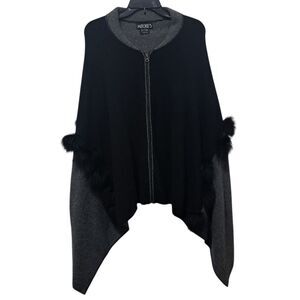Mitchie's 100% Wool Zip-Up Closure Y2K Poncho Fur Detail One Size Black/Gray