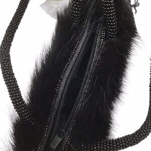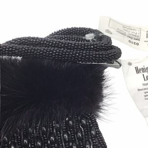 Mitchie’s Black Beaded Evening Bag Faux Fur Trim Top Handle Purse NWT Vintage