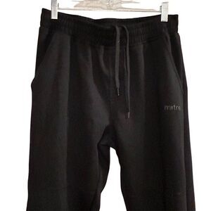 Keywords: Mitre jogger pants, men's fleece pants, black joggers, casual wear, relaxed fit, tapered leg, fall clothing, drawstring closure, machine washable, pre-owned excellent condition.