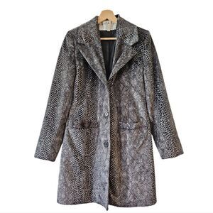 Mitsu London by Adler Gray Black Snake Velvety Buttons V Neck Trench Coat Size L
