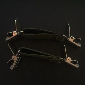 Green mitten clips with metal clasps to hold kids to their mittens/gloves.