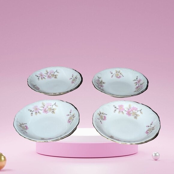 This beautiful vintage Mitterteich dessert set from 1949 to 1960 is a stunning addition to any collection. The porcelain bowls feature a gorgeous floral Springtime pattern in multicolor, with a glossy finish that catches the eye. It includes 4 dessert bowls and measures 5 1/8"" inches.