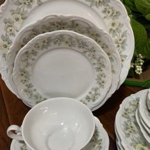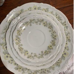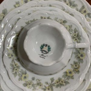 Set includes: 4 dinner plates, 4 salad plates, 4 butter plates, 4 tea cups with 4 saucers