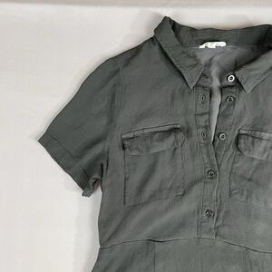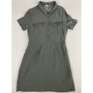 Mittoshop Button Detail Midi Shirt Dress Women's M Grey Short Sleeve Collared.