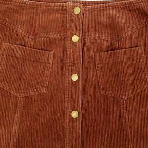 Mittoshop Corduroy Mini Skirt NEW Brown Button Front Size L Pockets Frayed Hem