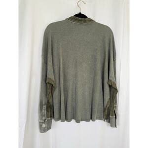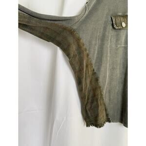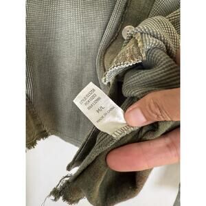 Mittoshop Distressed Olive Button-Up Shirt Size M/L Waffle Knit Utility Plaid