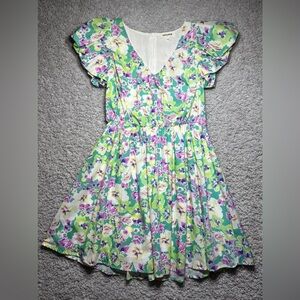 Mittoshop Dress Womens Small Mini Floral Cap Sleeve Ruffles Lined Vneck Flowy