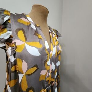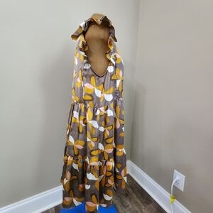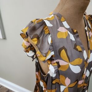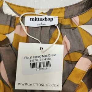 Mittoshop Floral Ruffle Sleeve Dress Tiered Mini Mocha Size S