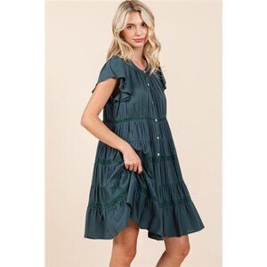 *The Lace Detail Ruffled Button Down Tiered Dress is a romantic and elegant choice for a feminine outfit. The lace detailing adds a delicate and charming touch, while the ruffled tiers create a flowy and flattering silhouette. Perfect for special occasions or a dressed-up daytime look, this dress exudes a whimsical and ethereal vibe that is sure to make a statement. Pair it with heels and delicate jewelry for a sophisticated and graceful ensemble that captures a sense of effortless beauty.