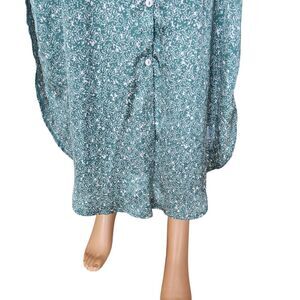 Mittoshop Maxi Dress Women Sz S Green Print Collar Button Front Polyester H42968