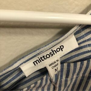 Mittoshop NWT Blue White Striped Short Sleeve Crossback Mini Dress size medium