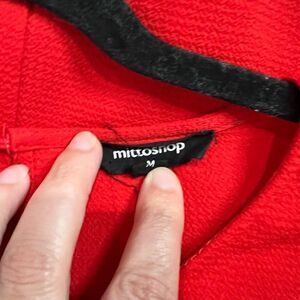 Mittoshop Red Ruched Sleeves Blouse. Size medium with measurements in the pictures. Gently used condition with no rips or stains.