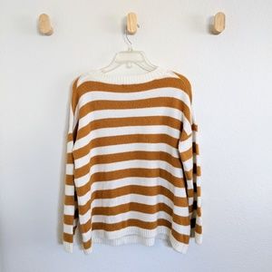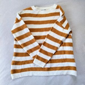 Cozy striped mustard and white sweater. Super soft and oversized fit. Good pre-owned condition.