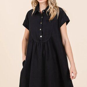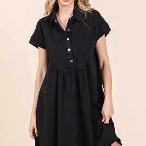 *The Twill Short Sleeve Collared Mini Dress is a versatile and stylish piece for your wardrobe. The twill fabric gives it a structured and polished look. With short sleeves and a collared neckline, this dress exudes a classic and timeless feel. Pair it with some sneakers or sandals for a chic and casual outfit.