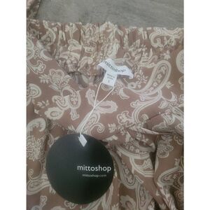 Mittoshop new with tag, wide leg pants. Paisley floral print. Elastic waistband band with built in tie belt. Extremely lightweight and flowy. Perfect for spring or summer. 100% polyester. Size small, approximate measurements in photos. Have a tier like ruching patchwork detail on legs.