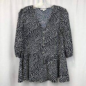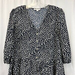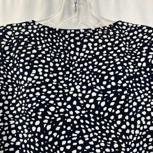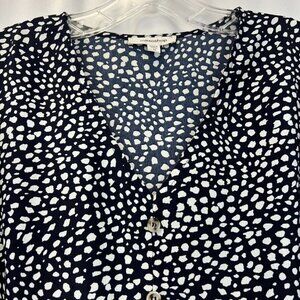 Mittoshop Womens Navy/White Print 3/4 Sleeve Button Front Top Size Medium