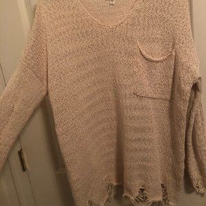 Oversized Mittoshop distressed long sleeve cream colored top, women's small, worn once