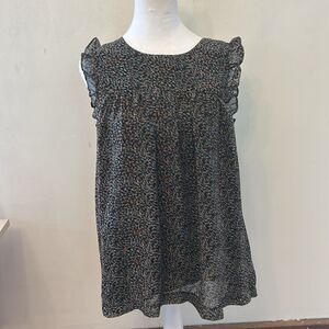 Mittoshop Leaf Print Ruffle cap sleeve blouse Size M EUC