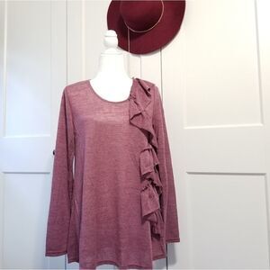 Mittoshop long sleeve top Ruffled detail going down one side 80% polyester 20% rayon ❤