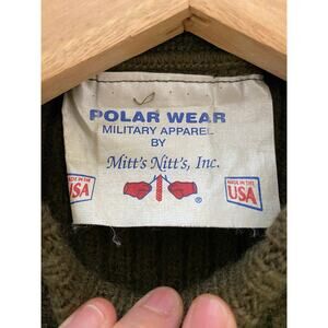 Stay warm and stylish with this Mitt's Nitt's Polar Wear women's military sweater. Made from 100% wool, this ribbed sweater is perfect for colder days. The army green color adds a touch of uniqueness to your wardrobe. In great condition and ready to wear.