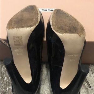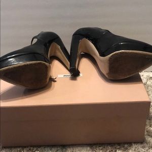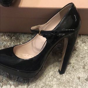 Black patent Mary Jane. Gently loved but still has a lot of wear in them. 5 inch heel