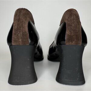 Miu Miu 90s Shoes 37 Black Patent Leather Brown Suede Square Toe Block Heel