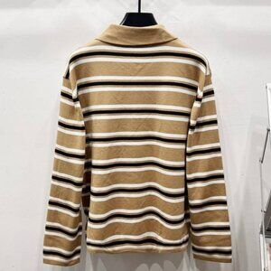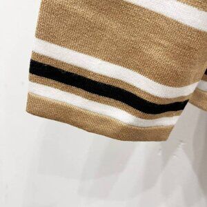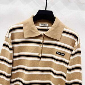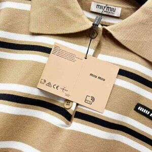 Stylish Miu Miu polo with beige and white stripes. Ideal for casual wear. Comfortable and chic.