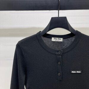 Elegant black top with buttoned front. Features Miu Miu logo detail.