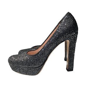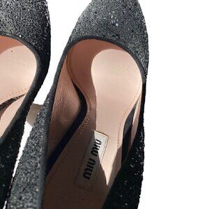 Miu Miu Black Glitter Closed Toe Platform Shoes