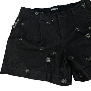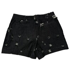Miu Miu Black Italian Denim Distressed High Waisted Shorts 4