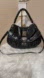 Elegant black leather bag with sleek silver hardware. Ideal for chic outings.
