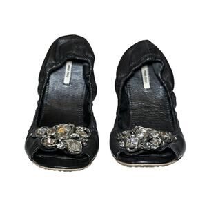 Miu Miu Black Leather Crystal Jewel Embellished Open Toe Ballet Flats Size 40