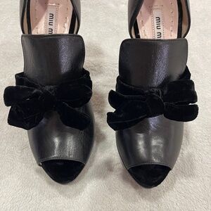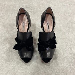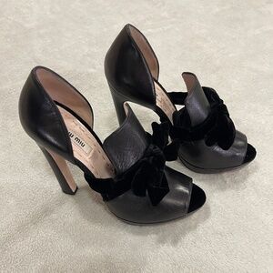 Miu Miu Black Leather Heels, Open Peep Toe Women's Size 7
