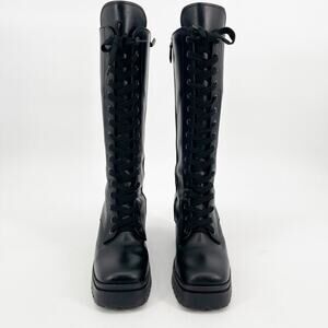 Miu Miu Black Military Combat Square Toe Chunky Block Heel Lug Sole Boot IT 40