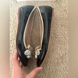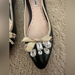 Miu Miu Black Patent Leather Crystal Embellished Ballet Flats Size 38.5