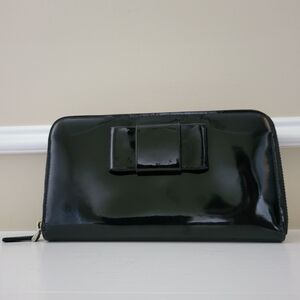 Miu Miu Black Patent Leather Zippy Wallet with Bow..