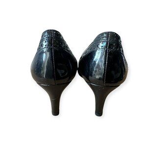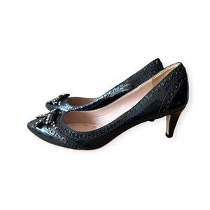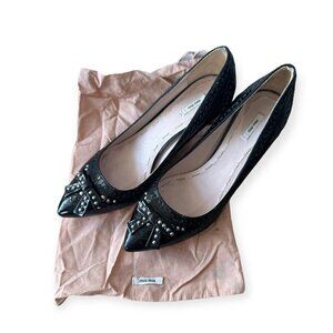 Miu Miu Black Patent Pumps with Studded Bow with perfs, Size 38.5 EU