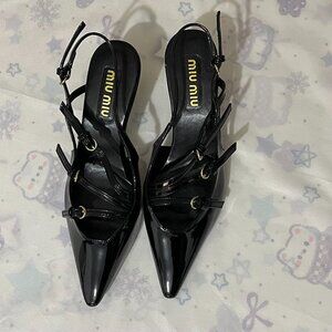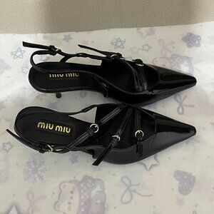 Miu Miu Black Pointed-Toe Buckled Pumps