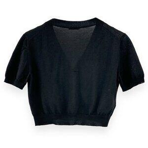 Miu Miu Black Short Sleeve Cashmere & Silk Cropped Button Up Top Cardigan sz 38
