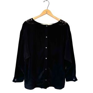 Miu Miu | Black Silk Blend Back Button Down Long Sleeve Blouse Size 44 US 12