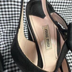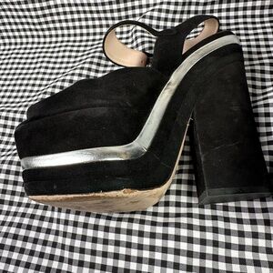 Miu Miu Black Silver Metallic 70s Disco Style Suede Platform Sandals EU 38 US 8