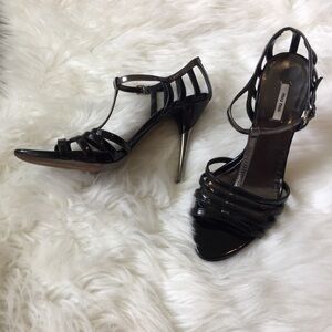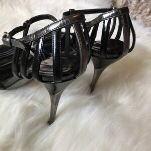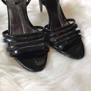 Elegant black strappy heels. Sleek design with a high heel. Perfect for evening wear.