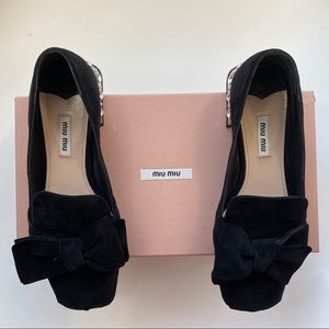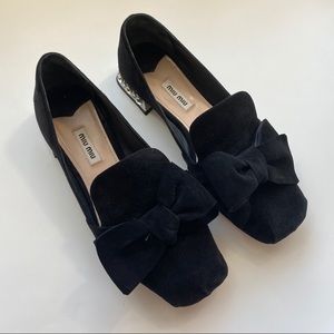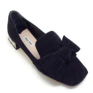Miu Miu Black Suede Bow Jeweled Donna Loafers 38