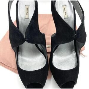 Miu Miu Black Suede Sling Back Peep Toe Heels Sandals