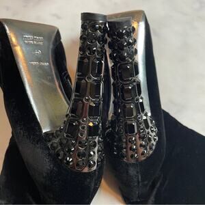 Miu Miu Black Velvet Crystal Embellished Ankle Boots Stiletto Heel Zip Booties