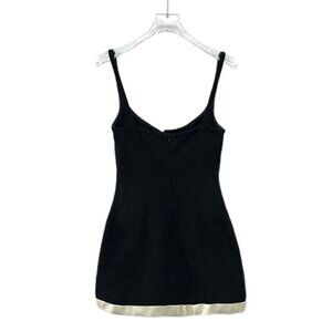 Miu Miu Black Wool Blend Dress With Gold Button Accents & Satin Hem Detail