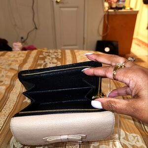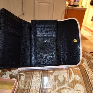 Elegant Miu Miu women's wallet in a sophisticated black and cream color combination. Perfect for adding a touch of luxury to any outfit. Only call-out is wear around the clasp (see pics). Comes in box with paperwork intact.