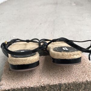 Elegant Miu Miu sandals. Black straps with tan woven sole. Perfect for summer.