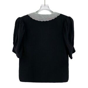 Miu Miu Black silk puff short-sleeve button-up shirt